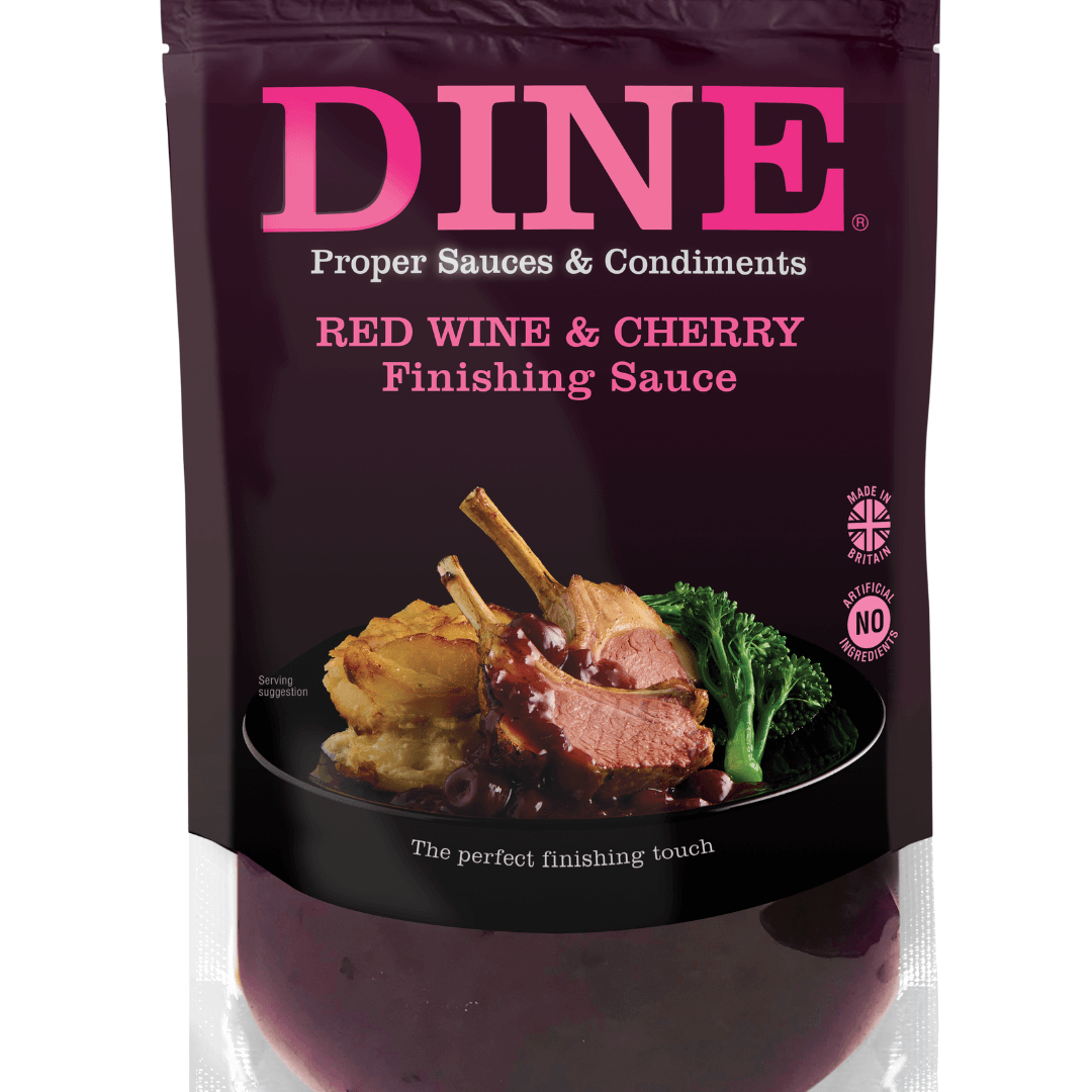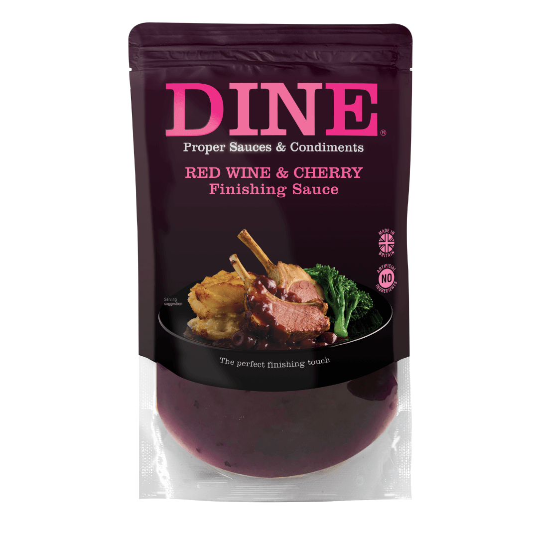 DINE IN Red Wine & Cherry Finishing Sauce is crafted with love and high-quality ingredients, allowing you to create a special meal at home. Real food and time to enjoy it. This quick-to-use, chef-inspired finishing sauce combines the deep warmth of red wine with the fruitiness of cherry. Ideally suited to duck, lamb and other red meats, it’s also delicious with roasted vegetables.