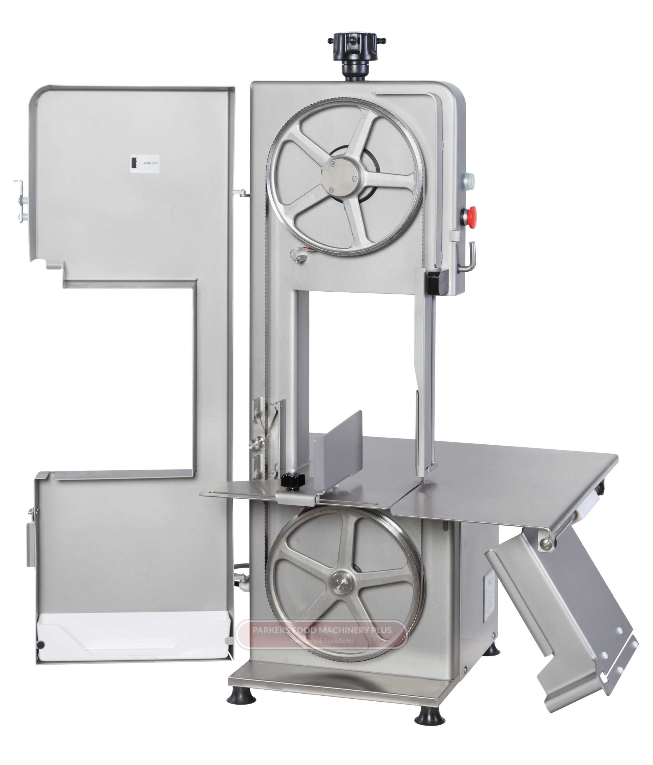 The standard model features: manual band tensioner, thickness adjustment stopper and hinged pusher with adjustable intermediate guide of the band.
