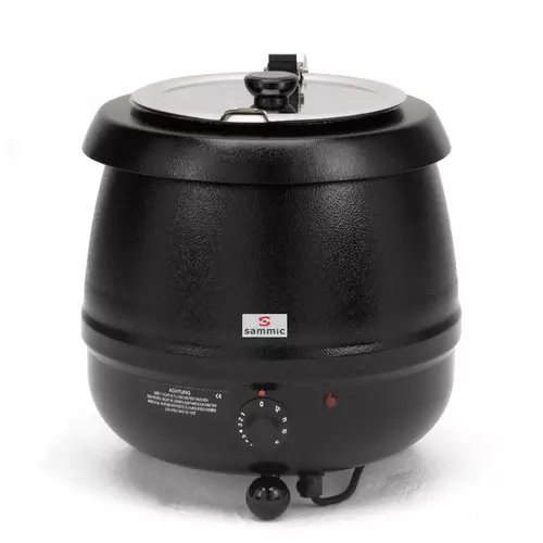 Soup kettle to keep the temperature of soups or liquids. Black enamel finish.