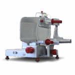 Special anodized aluminum alloy frame in compliance with hygiene standards, safety devices (blade guard, carriage block, low voltage controls), chrome-plated tempered steel blade.