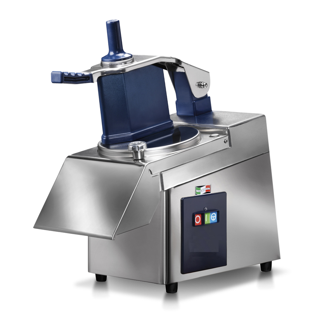 Stainless steel structure, indispensable to cut, slice, dice, grate, shred several products like vegetables, fruits, parmesan, chocolate, dry fruit, etc. Plastic hopper, belt driven motor, safety micro switch, low tension controls, equipped with plastic ejector disc as standard.