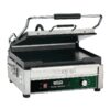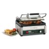 The great quality, heavy duty Waring Panini Grill 440mm is constructed from robust stainless steel and features a removable drip tray for easy cleaning and maintenance. It also comes with an adjustable thermostat for versatile cooking, power indicator lights, heat resistant handles and rapid heat up for convenience and easy operation. Ideal for cooking burgers, steaks, Paninis and toasted sandwiches in busy establishments.