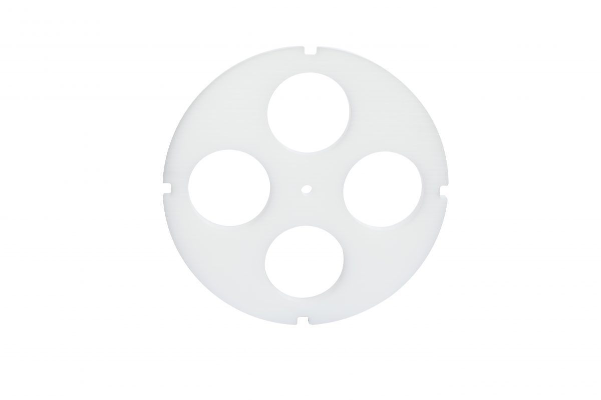 One can easily change shape, weight and size of the patty by simply exchanging the shaper disc.